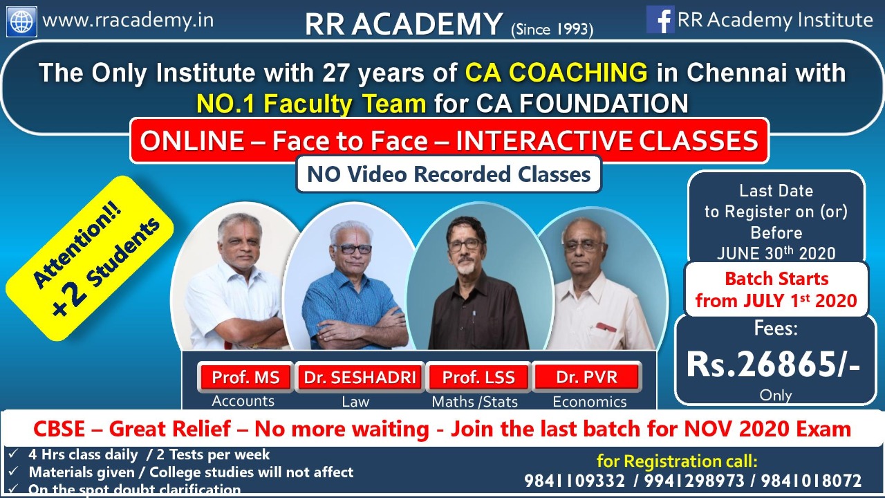 We are the top Institutions in Chennai providing coaching under one roof for chartered accountant(CA), Cost & Work Accountant (CWA) and Company secretary ( CS ). RR Academy is the Ultimate Destination for the ICWA Students all over Orissa, Andhra Pradesh, Kerala and Tamil Nadu.